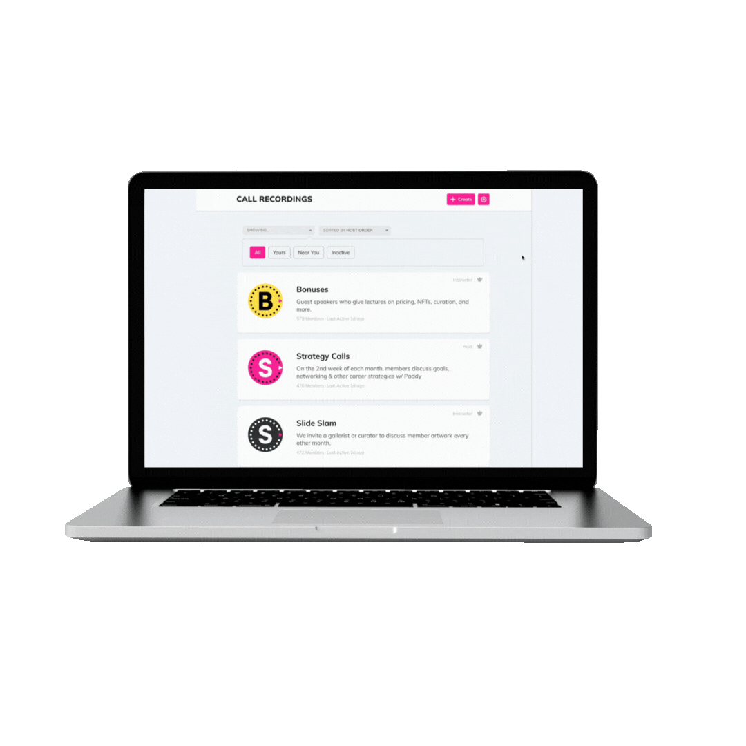 Recordings of all coaching and studio visits so you can access the most valuable materials easily and listen in virtually if you can’t attend.