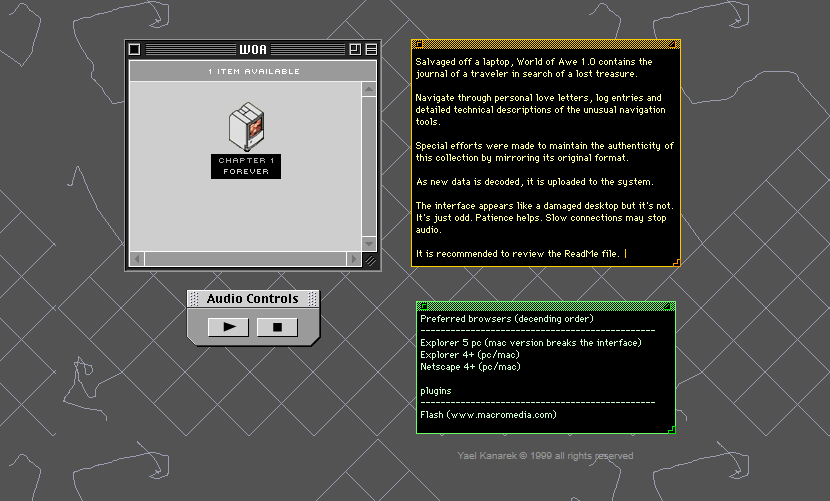 Artwork credit: Yael Kanarek, World of Awe, 2000, browser-based art work.