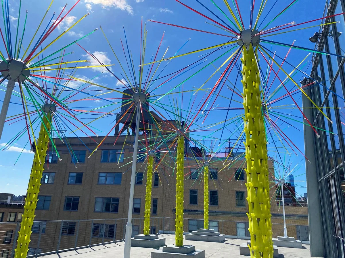 Alia Farid's Palm Orchard, 2022, installed on the sixth-floor balcony of the Whitney Museum.